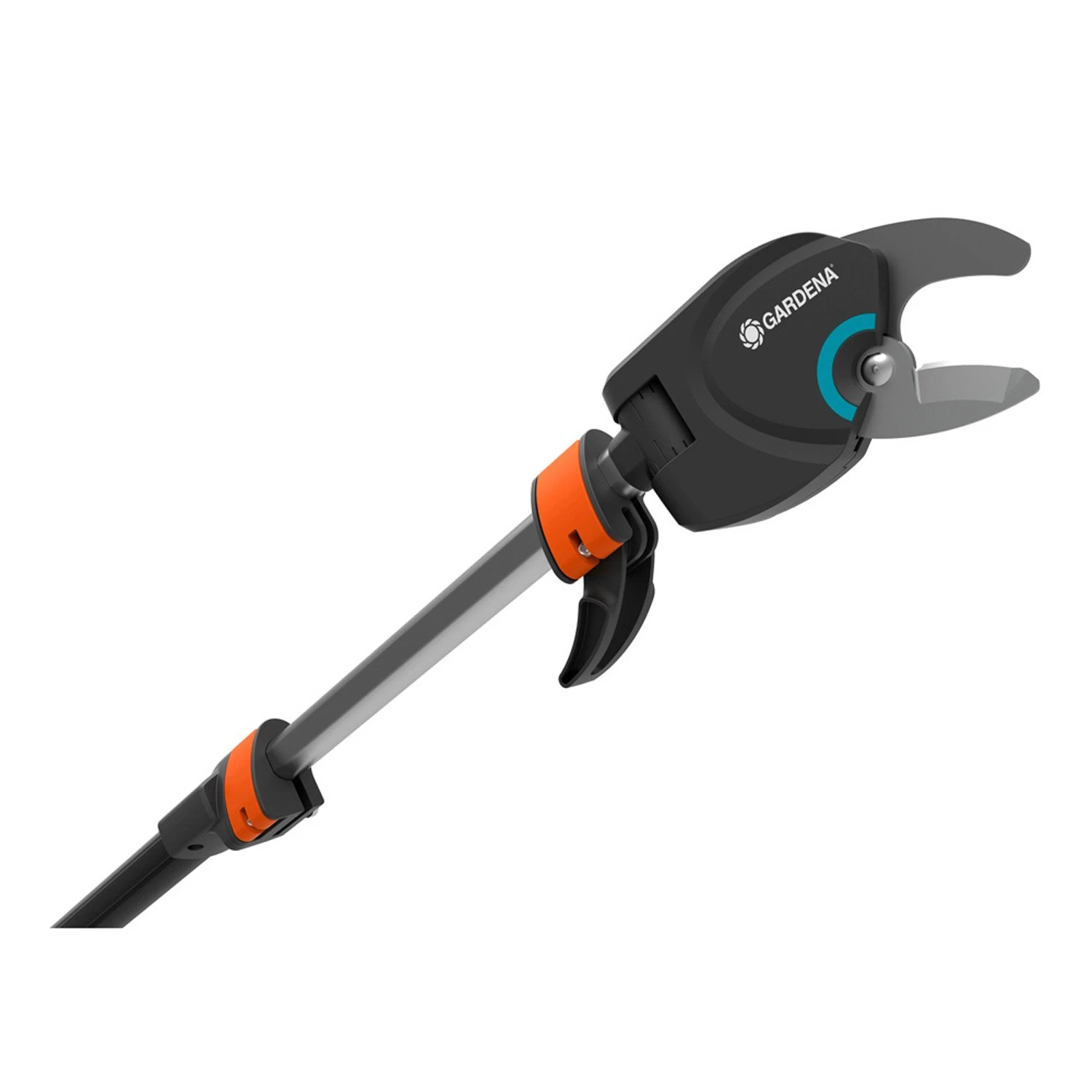 De nieuwe GARDENA telescopische boom- en takkenschaar StarCut 410 plus is de specialist voor het onderhoud van hoge bomen en struiken. Hij heeft een telescopische aluminium steel die traploos kan worden versteld van 230 tot 410 cm. Dit maakt de GARDENA Telescopische StarCut 410 plus nog flexibeler in gebruik en biedt een bereik van maximaal 6,5 m, inclusief de lengte van de gebruiker. De 12-voudige transmissie zorgt voor krachtig snoeien van takken met een diameter tot 32 mm. De nieuwe verstelbare haak voor het verwijderen van afgesneden takken zorgt voor extra comfort tijdens boomonderhoud. Hiermee kunt u gezaagde takken zonder problemen van de kronen van bomen verwijderen. De GARDENA Telescopische StarCut 410 plus heeft een intern mechanisme voor katroloverbrenging dat voorkomt dat het tijdens het snoeien in takken blijft haken. De extra lichte en slanke snijkop maakt handig en gericht snijden zelfs in de buurt van de kofferbak mogelijk. De snijhoek kan individueel vanaf de grond worden aangepast. De precisiegeslepen, niet-klevende messen verminderen de weerstand bij het zagen en garanderen een eenvoudige reiniging. De trekhuls met de slipstop en een extra T-hendel zorgen voor een aangename en veilige bediening. De GARDENA Telescopische StarCut 410 plus is ‘Made in Germany’. De 25-jarige garantie garandeert de beste kwaliteit.