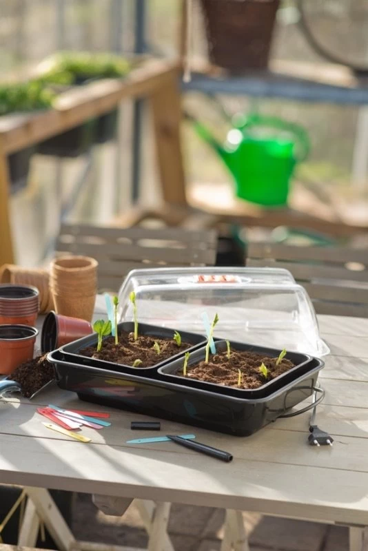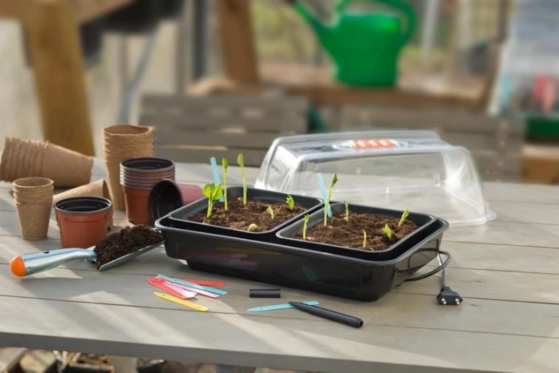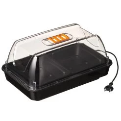 Deze luxe, verwarmde kweekkas van Nature is uitgerust met een verwarmingselement voor een stabiele temperatuur. De kweekkas is gemaakt van duurzame, harde kunststof (spuitgiet) en heeft twee aparte kweekbakjes. Dankzij de capillaire (vochtvasthoudende) mat wordt het water goed verdeeld in de kweekbak. De transparante deksel heeft ventilatieopeningen zodat de vochtigheidsgraad optimaal blijft. De verwarmde kweekkas heeft een afmeting van H 19 x 38 x 24 cm.