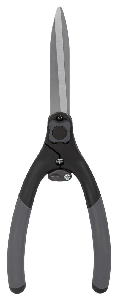 Deze buxusschaar is geschikt voor het vorm snoeien van de buxus. De messen van de buxusschaar zijn gemaakt van gehard chroom S50C van hoge kwaliteit wat zorgt voor een mooie rechte en scherpe snede. De handvatten zijn gemaakt van zacht antislip rubber wat voor een goede grip zorgt. Aan de buxusschaar zit een veiligheidsknop zodat de buxusschaar na gebruik gesloten kan worden.